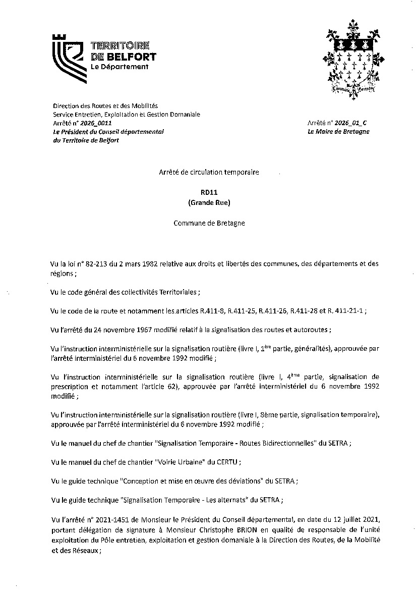 A compter du 19 janvier 2026 et jusqu'au 6 février 2026, la circulation se fera par alternat avec emploi de feux dans la Grande Rue suite à la reprise des travaux.