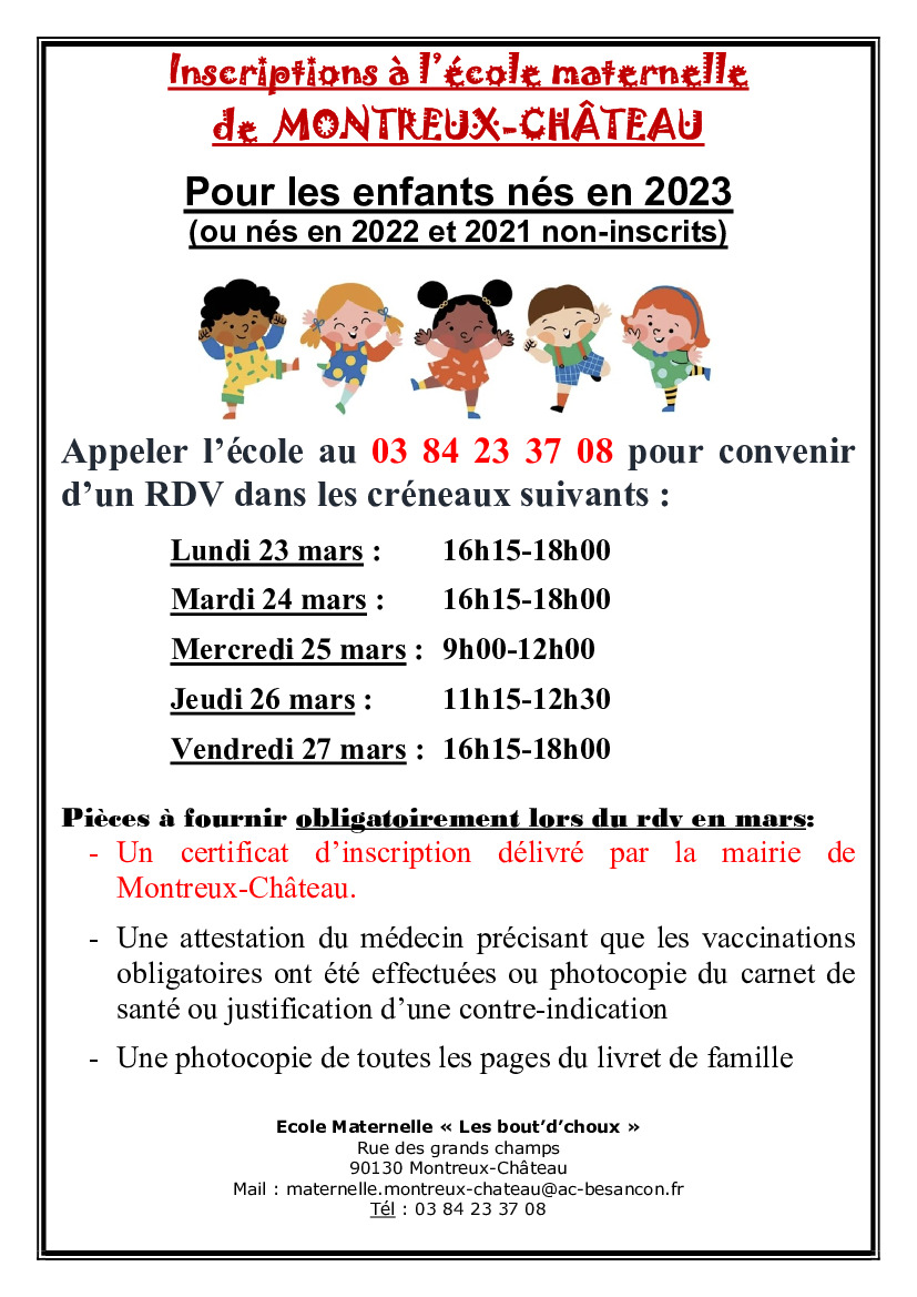 - Inscriptions école maternelle Montreux-Châteauon 6 février 2026