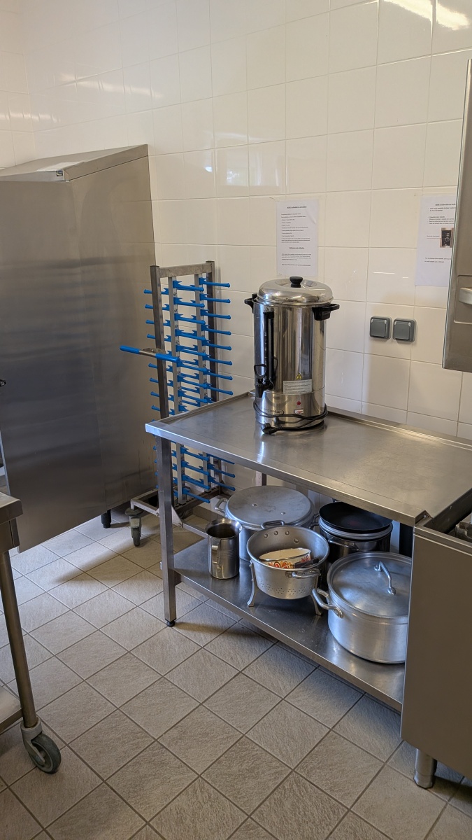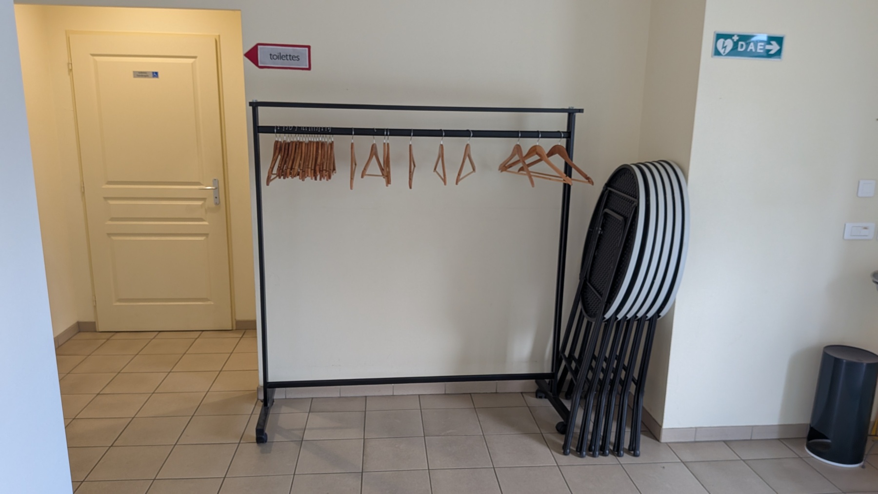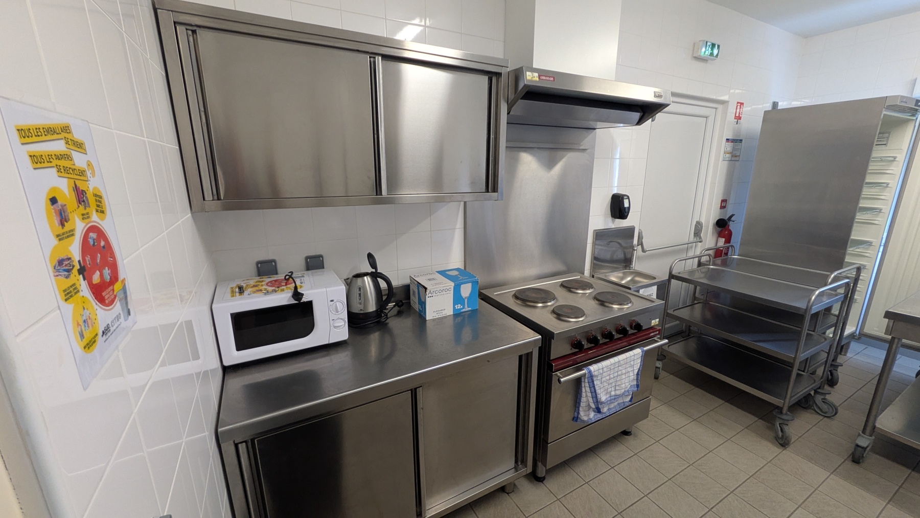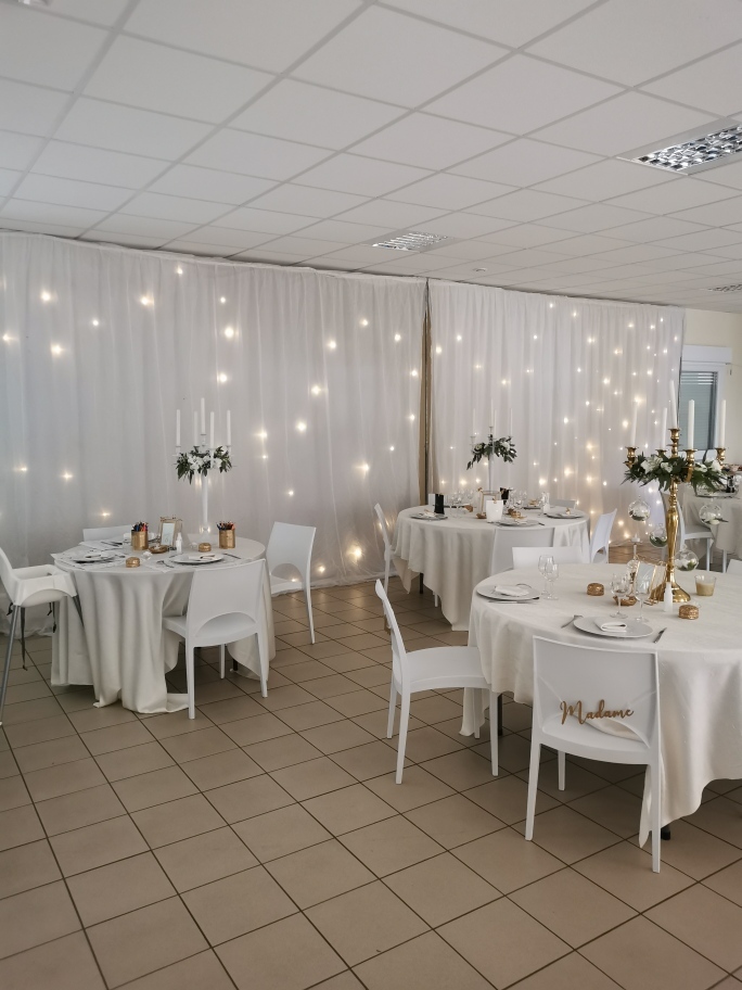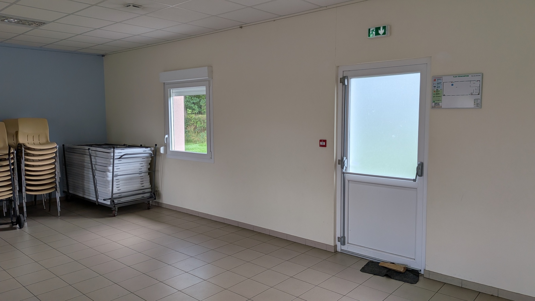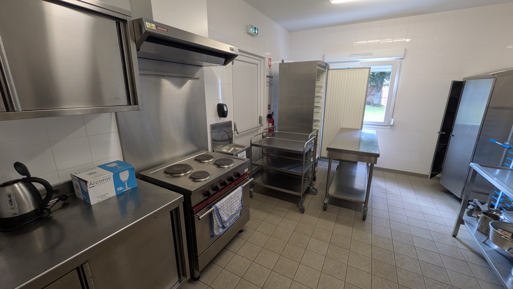 Nous vous proposons une salle pouvant accueillir jusqu’à 100 personnes. Elle est équipée de 20 tables et 100 chaises, d’une cuisine équipée (pour réchauffer) et de vaisselle pour 100 couverts.
